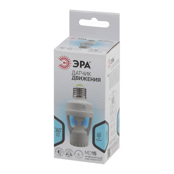 Простое устройство для экономии электроэнергии. В датчик-патрон вкручивается лампа с цоколем Е27, затем датчик с лампой вкручивается в стандартный патрон. Максимальное удобство в использовании и никаких дополнительных электромонтажных работ. Инфракрасный датчик-патрон MD15 от ЭРА имеет угол обзора 360 градусов и улавливает движение на расстоянии 6 метров. Вкрученная в него лампа автоматически включается, когда вы входите в помещение, и выключается, когда вы покидаете комнату. Больше не нужно подолгу нащупывать в темноте выключатель или ругать домочадцев за то, что забыли выключить свет. Датчик-патрон ЭРА сделает всё за вас! Инфракрасный датчик - самый распространённый и безопасный тип датчиков. Он улавливает инфракрасные волны, свойственные всем теплокровным существам: человеку или животным. Свет в помещении будет только в те минуты, когда вам это нужно. Так можно сэкономить до 80% электроэнергии.