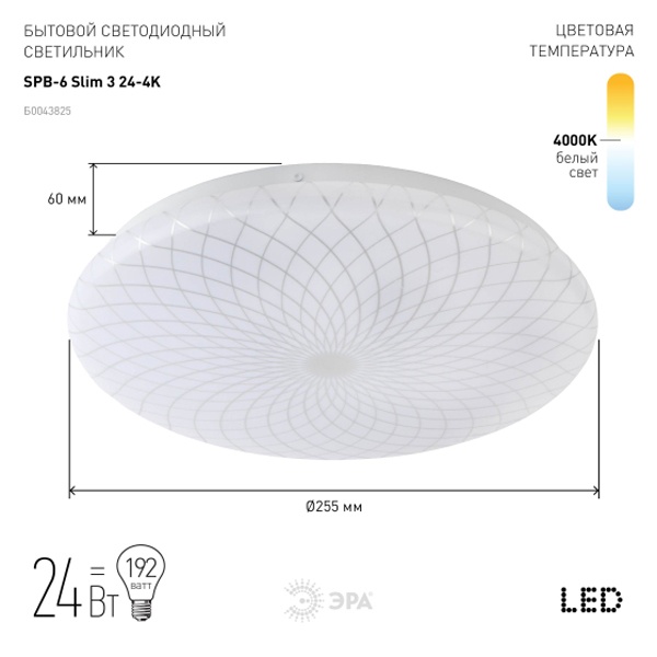 Светильник светодиодный SPB-6 "Slim 3" 24-4K бытовой 24Вт 4000К без ДУ Эра Б0043825