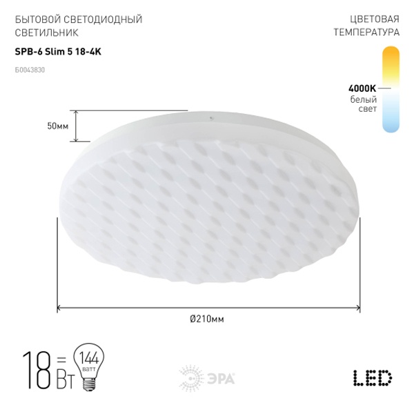 LED Светильник настенно-потолочный ЭРА Slim 5 18-4K, 18Ватт 4000K 1200Лм Б0043830