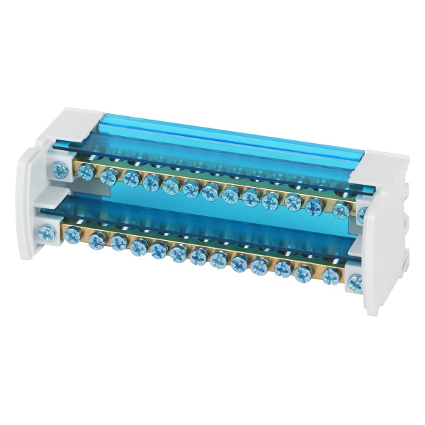 Шины выполнены из высококачественной латуни, изолирующая задняя панель и прозрачная защитная крышка выполнены из самозатухающего пластика. Применяются при комплектации щитового оборудования для подсоединения нулевого провода, провода заземления и фазных проводников. Способы установки: - на монтажную DIN-рейку 35 мм; - на панель щита двумя винтами;