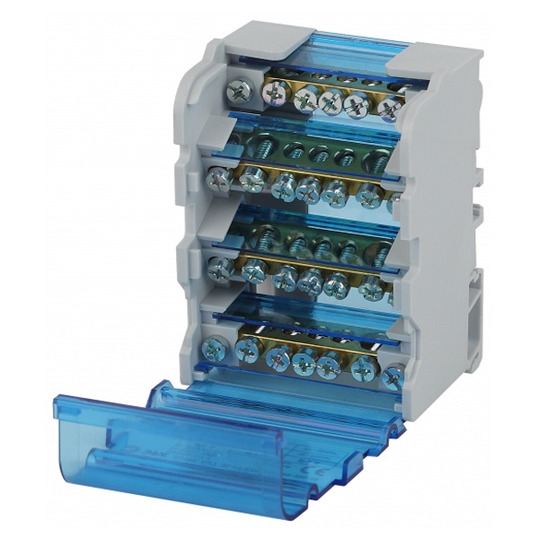 Шины выполнены из высококачественной латуни, изолирующая задняя панель и прозрачная защитная крышка выполнены из самозатухающего пластика. Применяются при комплектации щитового оборудования для подсоединения нулевого провода, провода заземления и фазных проводников.