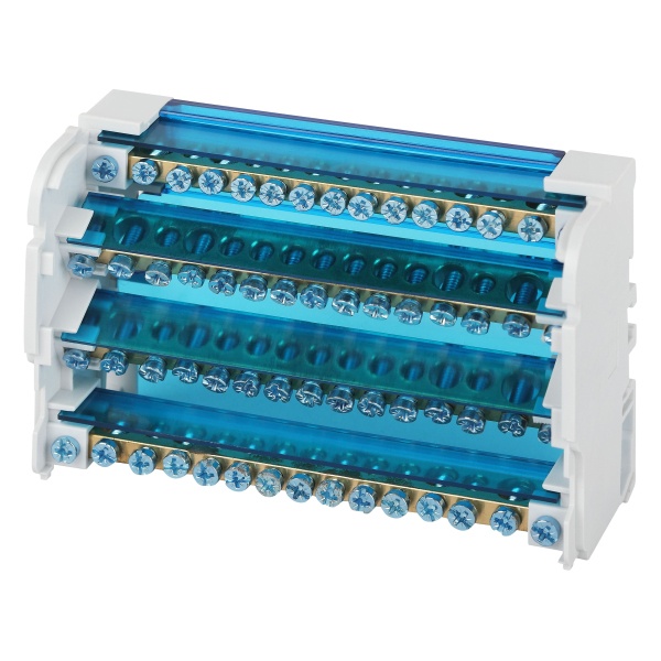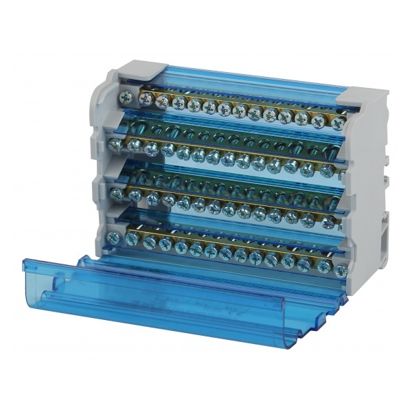 Шины выполнены из высококачественной латуни, изолирующая задняя панель и прозрачная защитная крышка выполнены из самозатухающего пластика. Применяются при комплектации щитового оборудования для подсоединения нулевого провода, провода заземления и фазных проводников.