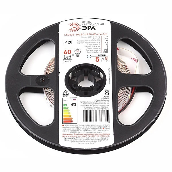 Лента светодиодная LS2835-4.8-60-12-6500К-IP20-2year-5m KU-2835AD-60D-W (уп.5м) ЭРА Б0044110