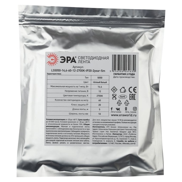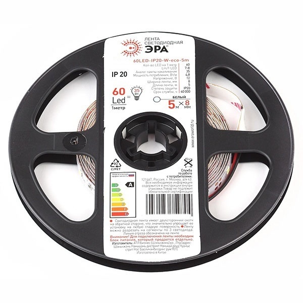 Светодиодная лента имеет двухсторонний скотч на обратной стороне, что значительно упрощает ее установку на любую гладкую поверхность. Ленту можно разрезать на сегменты по 3 светодиода. Линия отреза обозначена на ленте.