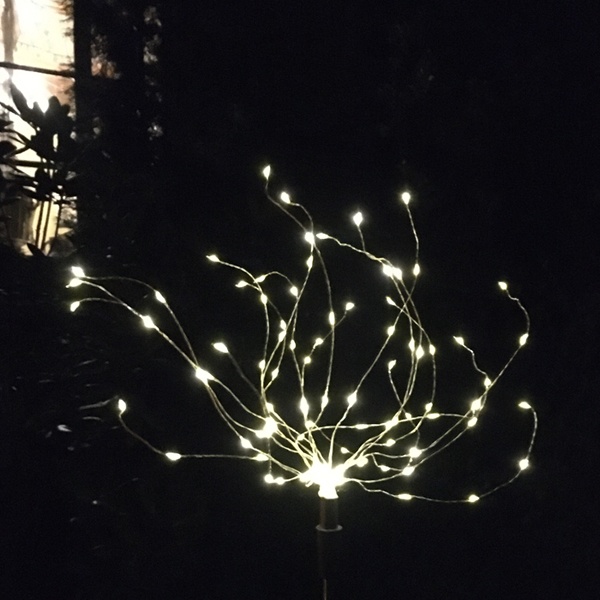 Беспроводной led светильник "Фейерверк" на солнечной батарее торгового знака Era станет необычным украшением вашей дачной территории. Небольшие размеры позволяют расположить его в саду, украсить декоративный пруд, необычно подсветить тропинку или придомовую территорию. Оригинальный дизайн конструкции в виде хаотично торчащих проволок напоминает салют. С наступлением темноты мелкие LED диоды в количестве 120 штук, загораются желтым светом. Территория вокруг светильника сразу приобретает праздничный характер. Конструкция осветительного прибора выполнена из пластика, имеет высоту 31 см, она с легкостью вставляются в землю с помощью штыря. Питание устройства происходит во включенном режиме, в дневное время. Солнечная батарея предусматривает 8 часов непрерывной работы. Высокая степень защиты от пыли и влаги устройства составляет IP44 и позволяет оставлять светильник в саду даже во время дождя. Гарантийный срок изделия – 6 месяцев. Срок службы – 2 года.