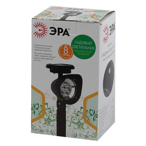Декоративный светильник на солнечной батарее компании ЭРА – это чудесный вариант для наружной ночной подсветки, а также отличный выбор, чтобы подсветить фасад дома или приусадебный участок. Он выполнен в стиле минимализм и представляет собой грунтовый фонарь в пластиковом корпусе черного цвета с рассеивателем в форме конуса. В качестве источника света служат 3 LED лампы. Садовый светильник работает от аккумулятора, его заряда хватает на 8 часов непрерывной работы. Он заряжается в течение всего светового дня, индикатор автоматически включает освещение в темное время суток и выключает днем. Осветительный прибор на солнечной батарее – это отличное решение для уличного освещения, где невозможно установить проводные фонари. Прочная конструкция и влагонепроницаемый корпус обеспечивают светильнику длительный срок службы. Устройство имеет степень защиты – IP44 и рассчитано на применение на улице. Вес устройства – 0,22 кг. Гарантийный срок – 6 месяцев. Срок службы изделия – 2 года.