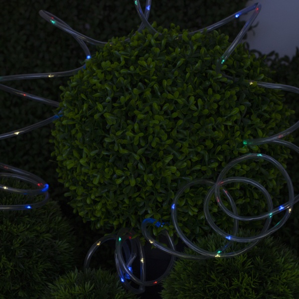 Светодиодная лента ERANN24-12 станет ярким источником света на загородной территории. За счет простого крепления при помощи короба или клипсы Вы сможете установить гирлянду по периметру здания, украсить прудик, изящно подсветить аллею или вход в дом. Также возможно использование на фасадах магазинов и торговых центров. Дюралайт работает на солнечной батарее. Такой способ получения энергии является самым экологичным, энергоемким, а также бесшумным. Питание происходит во включенном режиме, днем. С наступлением ночи светодиодная лента загорается разными цветами, создавая праздничную атмосферу. Гибкая гирлянда выполнена из ПВХ. Высокая степень защиты от пыли и влаги позволяет оставлять ее на улице даже во время дождя.