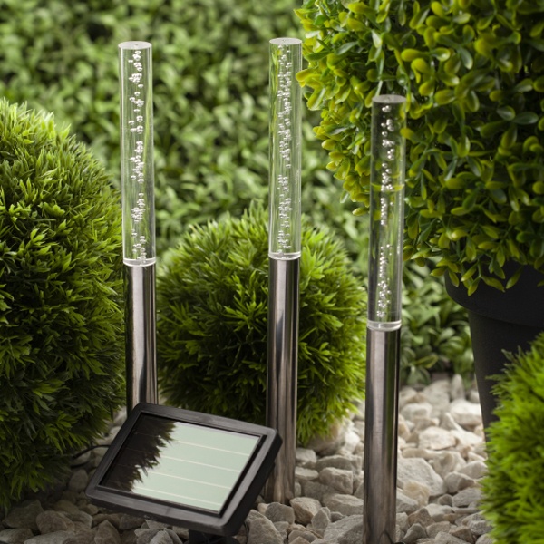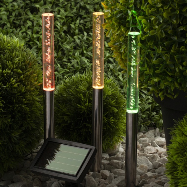 Беспроводная садовая гирлянда бренда Era "Пузырьки" станет эффектным украшением вашего сада. Комплект из трех светильников, соединенных между собой, имеет питание от одной панели. Фигурки из ударопрочного пластика высотой 38 см с легкостью вставляются в землю. Общая длина фонарей составляет 144 см. С их помощью можно украсить декоративный пруд или бассейн, необычно подсветить дорожку или придомовую территорию. Питание происходит во включенном режиме, днем. С наступлением темноты пузырьки начинают медленно переливаться желтым, зеленым и оранжевым цветами. Приспособление способно функционировать 2 способами – от солнечной батареи и от аккумулятора. Благодаря особому датчику, который определяет уровень освещенности, происходит включение и выключение гирлянды. Заряда солнечной батареи достаточно для непрерывного функционирования аксессуара на протяжении 8 часов. Источником света служат 3 LED лампы. Материал светильника – нержавеющая сталь и пластик. Степень защиты изделия – IP44, которая исключает риск негативного воздействия влаги и позволяет использовать светильник на улице. Гарантия изделия – 6 месяцев. Срок службы – 2 года.