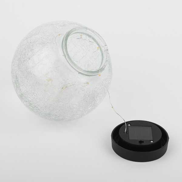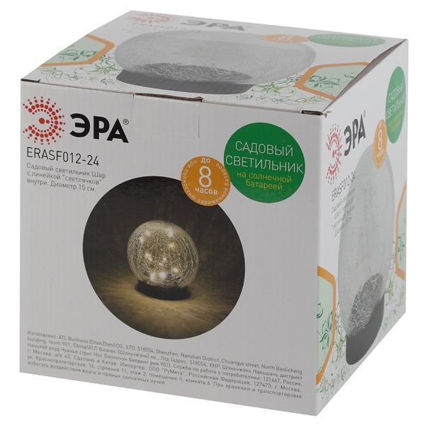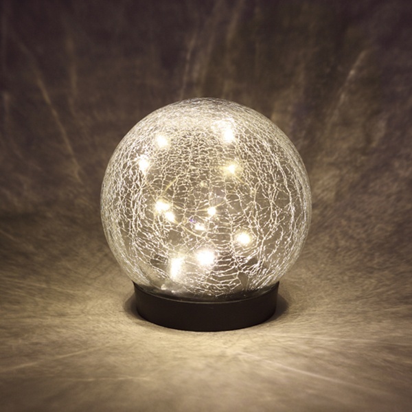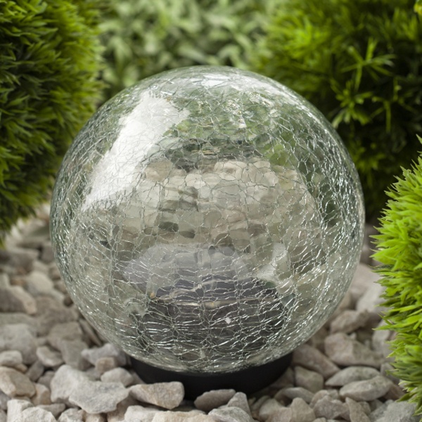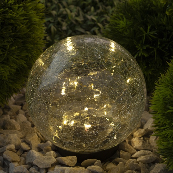 Садовый светильник «Шар малый» на солнечной батарее торгового знака ERA отлично смотрится в саду днем как декоративный элемент и восхищает ночью своим светом. «Стеклянный» шар с эффектом кракле имеет диаметр 15 см и особенно эффектно смотрится в сочетании с шаром большим диаметром 20 см. Декоративный светильник работает от аккумулятора, его заряда хватает на 8 часов непрерывной работы. Он заряжается в течение всего светового дня, индикатор автоматически включает освещение в темное время суток и выключает днем. Источникам света служат 15 светодиодов. Цвет арматуры лампы – черный, круглый плафон выполнен из прозрачного пластика. Прочная конструкция и влагонепроницаемый корпус обеспечивают светильнику длительный срок службы. Устройство имеет степень защиты – IP44 и рассчитано на применение на улице. Вес – 1,0 кг. Гарантийный срок – 6 месяцев. Срок службы изделия – 2 года. Перед использованием светильника его необходимо включить и зарядить.