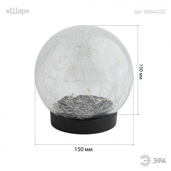 Светодиодная садово-парковая лампа ЭРА на солнечной батарее Шар малый Б0044232