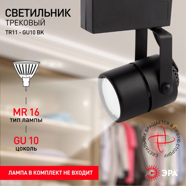 Б0044270 Светильник трековый однофазный ЭРА TR11-GU10 BK под лампу MR16 черный фото 11