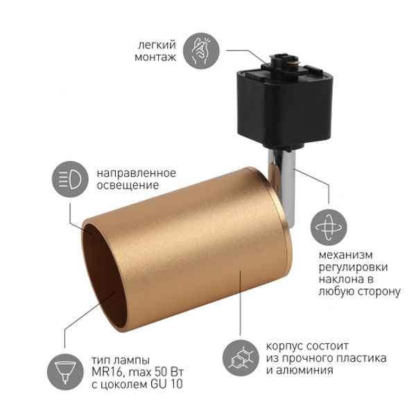 Трековый светильник однофазный ЭРА TR14-GU10 SG MR16 сатин золото