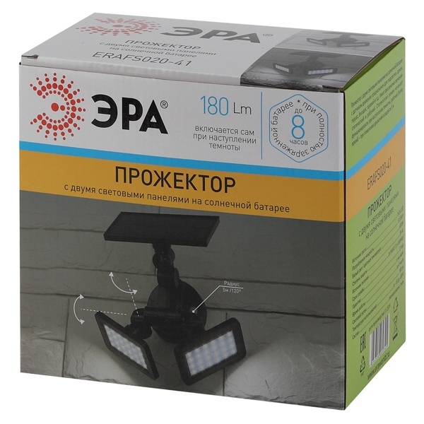 ERAFS020-41 ЭРА Фасадный светильник с двумя световыми панелями на солнечной батарее,2х24LED,180lm (6/12/180)