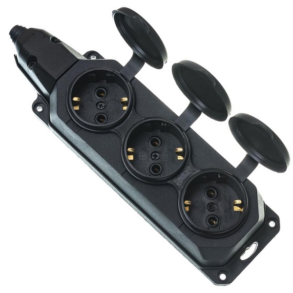 Колодка удлинителя 3-м с заземл. 16А IP44 K-3e-B-IP44 каучук черн. Эра Б0044545