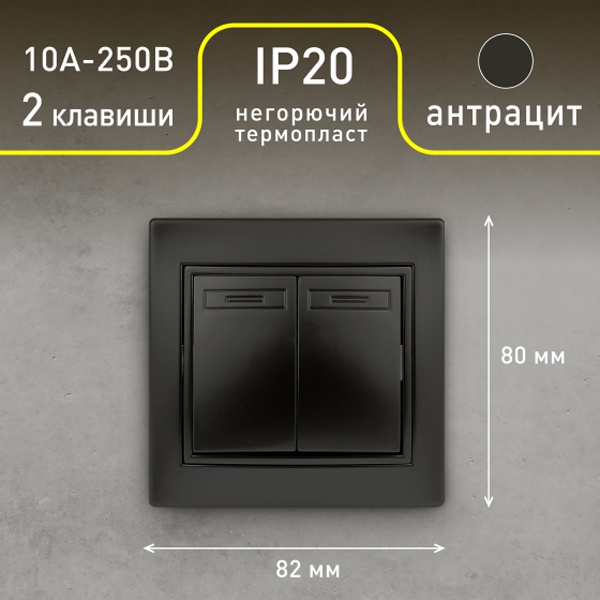 1-104-05 Intro Выключатель двойной, 10А-250В, IP20, СУ, Plano, антрацит (10/200/2400)