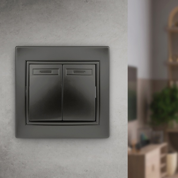 1-105-05 Intro Выключатель двойной с подсветкой, 10А-250В, IP20, СУ, Plano, антрацит (10/200/3600)