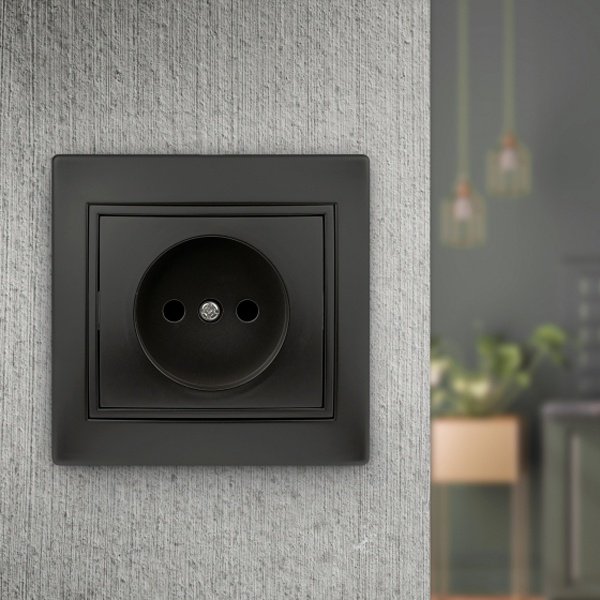 Электрическая розетка для скрытого монтажа в сухих помещениях, черного цвета, Intro Plano. Б0044566