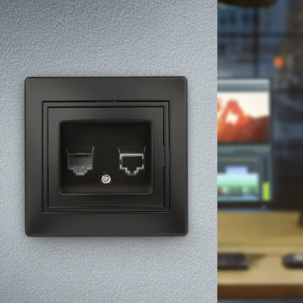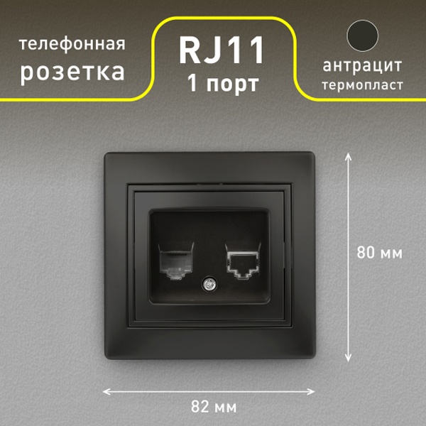 Телефонная розетка RJ11 для скрытого монтажа в сухих помещениях, цвета антрацит, Intro Plano. Б0044574