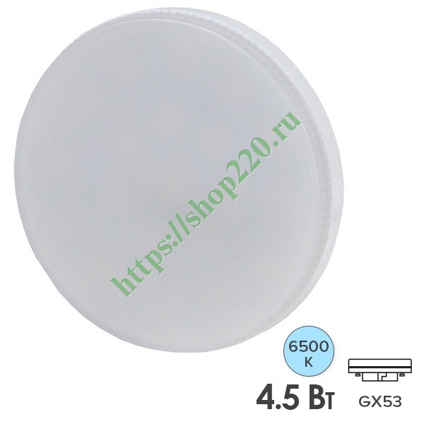 Светодиодная лампочка таблетка акцентного освещения ERA, мощностью 4,5 Ватт, с цоколем GX53, холодный дневной свет Б0045329