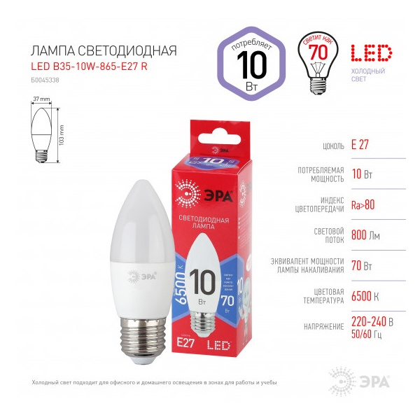 Экономичная светодиодная лампа ЭРА Серии Бюджет с отличными характеристиками для установки в люстры и все типы бытовых светильников - потолочные, настольные, бра. Бережёт электроэнергию, ярко светит, имеет долгий срок службы. Цветовая температура - холодный белый свет. Такое освещение бодрит, повышает работоспособность. Этот современный источник света создаёт комфортное и безопасное для глаз освещение.