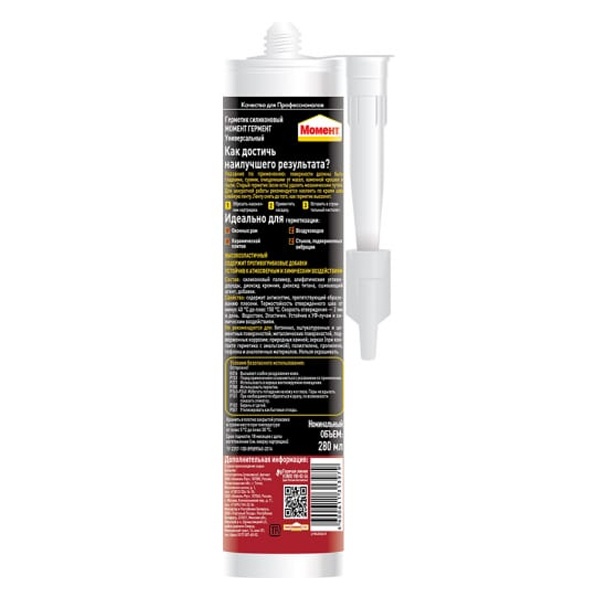 Силиконовый универсальный герметик Момент Гермент, белый, объемом 280 мл, под пистолет Б0045383
