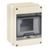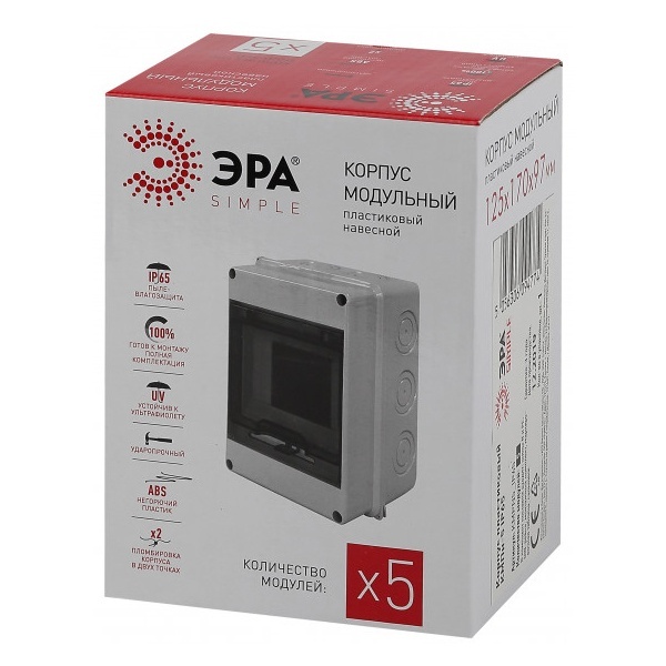 Отечественная компания Эра предлагает линейку модульных боксов КМПн, которые отличаются друг от друга количеством монтируемых устройств на DIN-рейку. Данная модель представляет собой пластиковый электрощиток навесного типа, который вмещает в себя до 5 модулей. Его предназначение состоит в защите аппаратов электробезопасности. Областью его применения выступают частные дома, жилые квартиры и офисные помещения. Материалом изготовления корпуса выступает высокопрочный ударостойкий негорючий ABS-пластик. Щит обладает степенью защиты IP65, позволяющей размещать его на открытом пространстве. Пыле- и влагонепроницаемая конструкция обеспечивает надежную защиту встроенного оборудования, а для визуального контроля о состоянии приборов в ней предусмотрено наличие прозрачной защитной крышки. Электроприборы устанавливаются на DIN-рейку, которая входит в комплект. Среди главных преимуществ такого бокса можно выделить аккуратный внешний вид, наличие выштампованных отверстий для подключения кабеля к аппаратуре, возможность пломбировки корпуса в 2 точках и устойчивость к ультрафиолету.