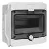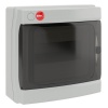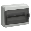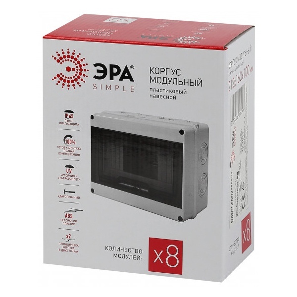 Компактный корпус настенной установки от известной компании Эра представляет собой модульный шкаф вместимостью до 8 единиц аппаратуры. Его основное назначение состоит в аккуратном размещении и защите электрического оборудования на DIN-рейке, которая входит в комплект поставки. Сферой использования такого шкафа выступает жилой и частный сектор, офисные помещения и торговые площадки. В качестве используемого материала изготовления выступает негорючий ABS-пластик, который обладает ударопрочностью и устойчивостью к ультрафиолету. Степень защиты корпуса - IP65. Такой уровень безопасности является надежным и не допускает проникновения влаги и пыли во внутреннее пространство бокса, что позволяет его размещать вне помещений. Наличие прозрачной защитной крышки в конструкции корпуса гарантирует удобство и позволяет следить за состоянием электрооборудования. Корпус полностью укомплектован и готов к монтажу. Он имеет выштампованные отверстия для подключения кабеля к аппаратуре и обладает возможностью пломбировки в 2 точках.