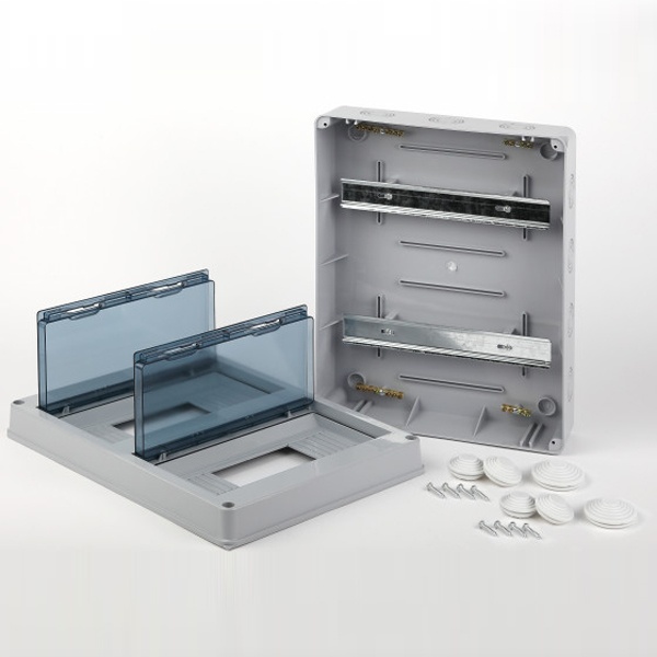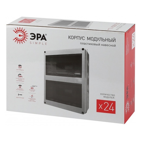 Навесной бокс КМПн-24 от известного бренда Эра представляет собой модульную конструкцию, которая рассчитана на установку 24 единиц аппаратуры: по 12 модулей в 2 ряда. Он предназначен для размещения и защиты электрооборудования. Внешне это пластиковый корпус белого цвета, который имеет лаконичный аккуратный вид и эстетично смотрится в помещении. Он полностью укомплектован и готов к монтажу. Модульные устройства монтируются на 2 дин-рейки, а наличие 2 прозрачных защитных крышек на лицевой панели корпуса обеспечивает удобство, так как позволяет визуально наблюдать за состоянием электроприборов. Навесной электрощиток сделан из ударопрочного, огнестойкого и устойчивого к ультрафиолетовому излучению ABS-пластика. Он обладает надежной степенью защиты IP65 и не допускает проникновения пыли и влаги внутрь конструкции. На поверхности бокса присутствуют выштампованные отверстия для подключения кабеля. Его можно пломбировать в 2 точках. Такой корпус необходим для жилых квартир, частных домов и офисов.