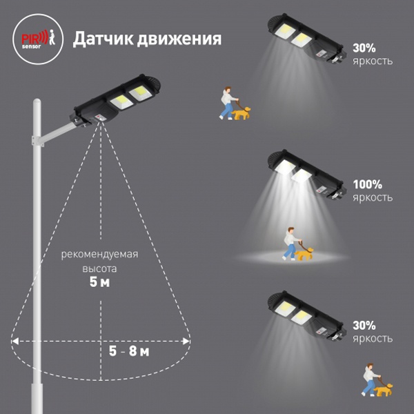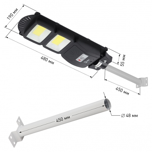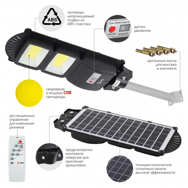 Светильник консольный 40Вт 750лм 5000К IP66 на солнечной батарее COB с кронштейном с датчиком движения ПДУ ЭРА Б0046794