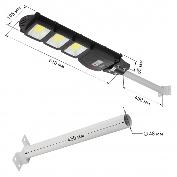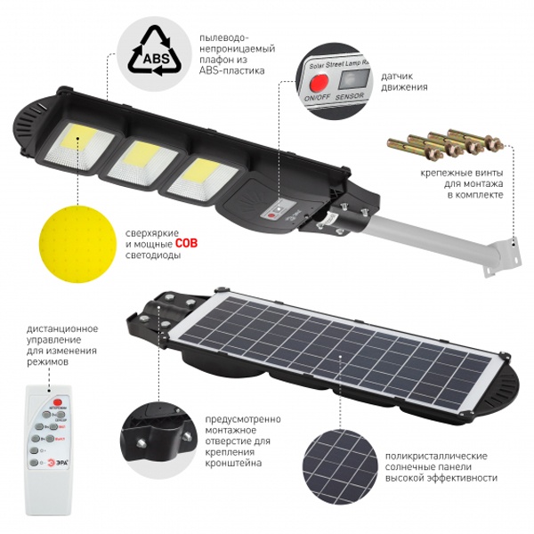 Светильник консольный 60Вт 1100лм 5000К IP65 на солнечной батарее COB с кронштейном с датчиком движения ПДУ ЭРА Б0046796