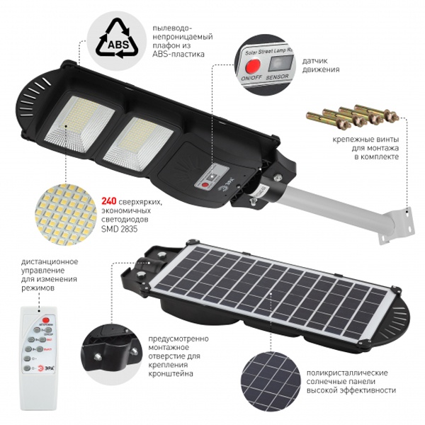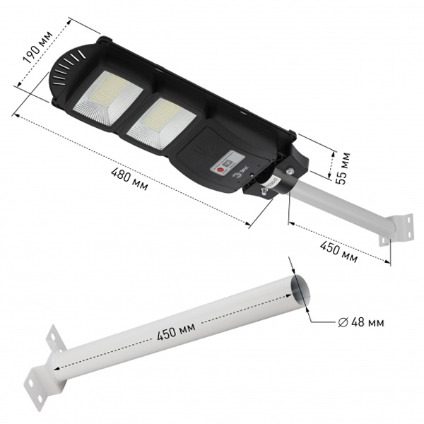 Б0046800 Светильник консольный ЭРА SMD 40W 700Lm 5000K IP66 ПДУ на солнечной батарее с датчиком движения фото 11