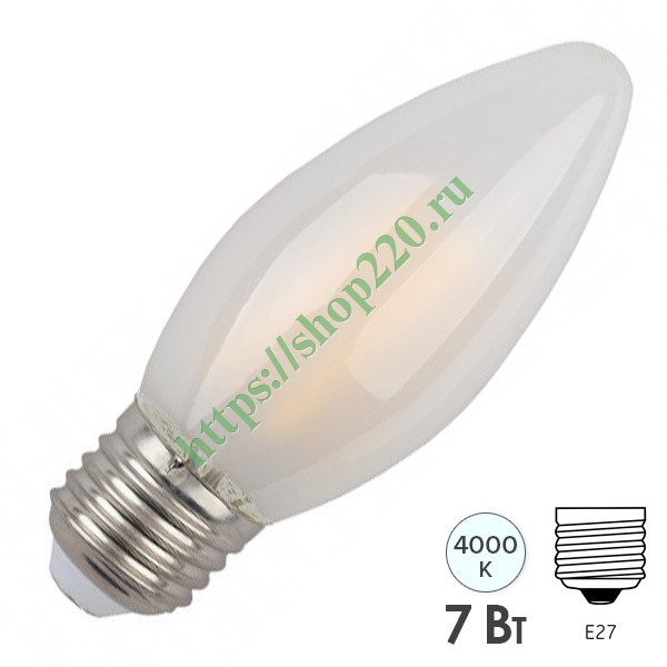 Энергосберегающая LED лампочка свеча с нитевидными светодиодами, мощностью 7 Ватт, с цоколем E27, нейтральный свет, матовая колба Б0046990