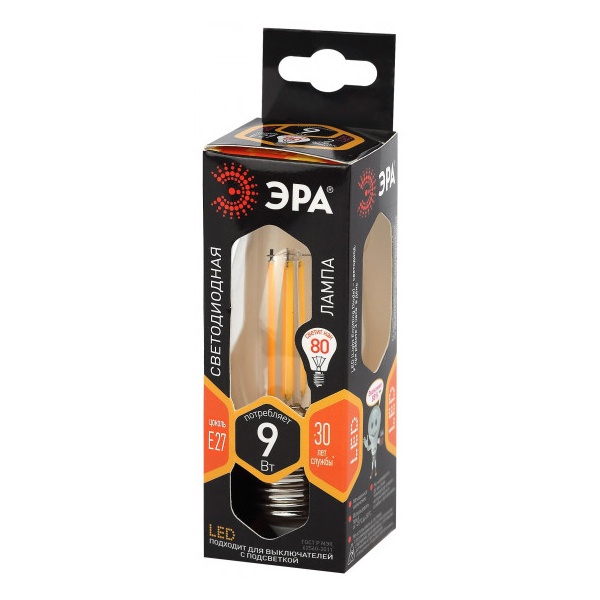 Лампа светодиодная филаментная F-LED B35-9w-827-E27 B35 9Вт свеча E27 тепл. бел. ЭРА Б0046993