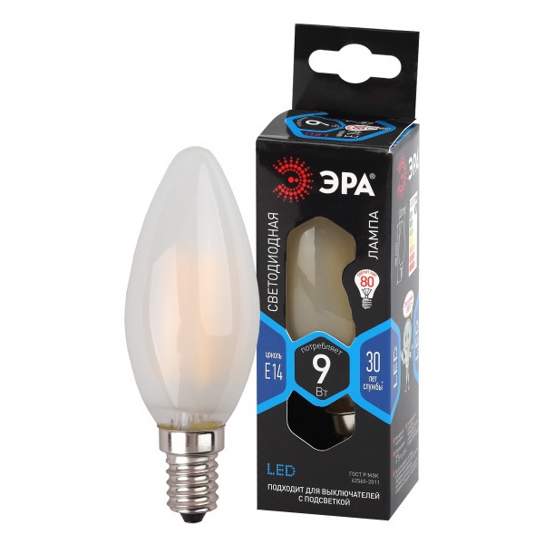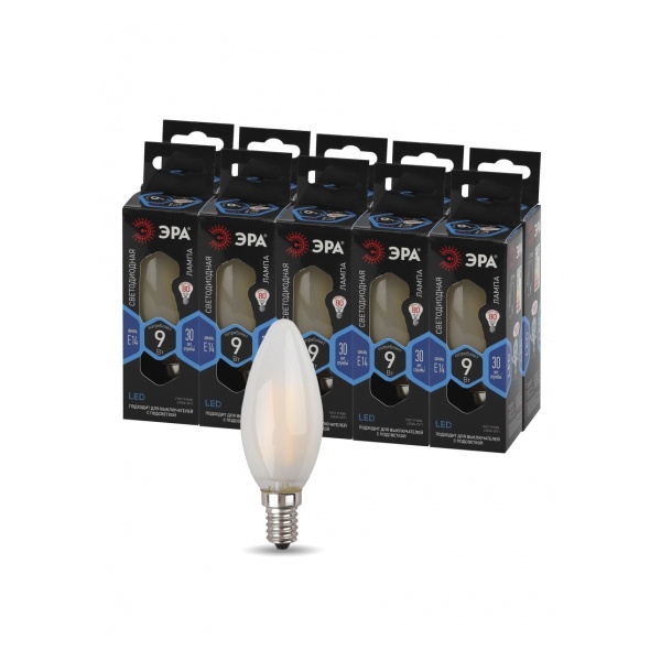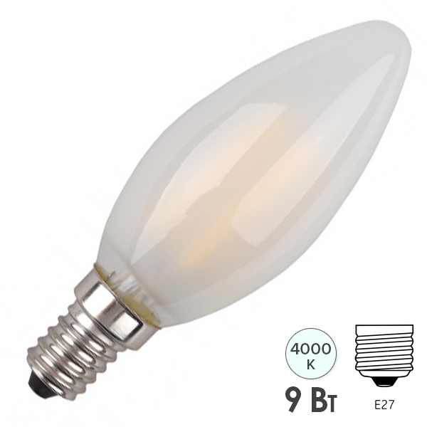 Энергосберегающая LED лампочка свеча с нитевидными светодиодами, мощностью 9 Ватт, с цоколем E14, нейтральный белый свет, матовая колба Б0046996