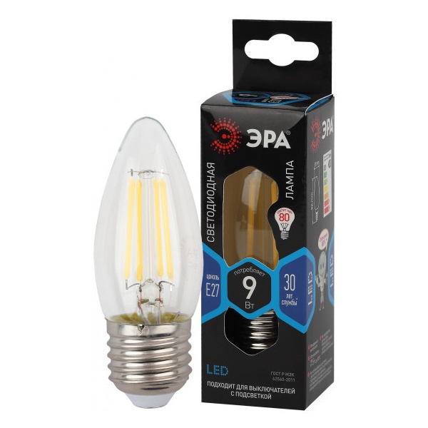 Лампа светодиодная филаментная F-LED B35-9W-840-E27 9Вт B35 свеча 4000К нейтр. бел. E27 Эра Б0046997