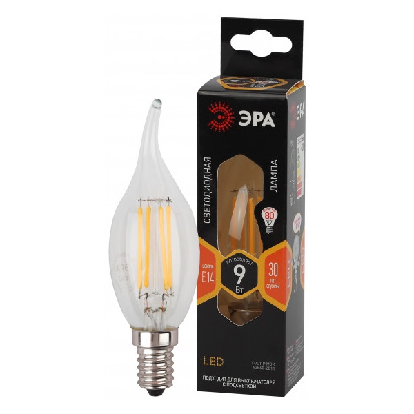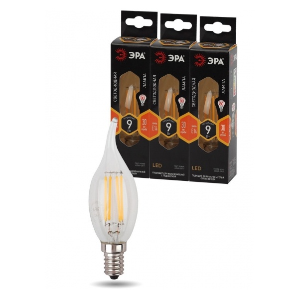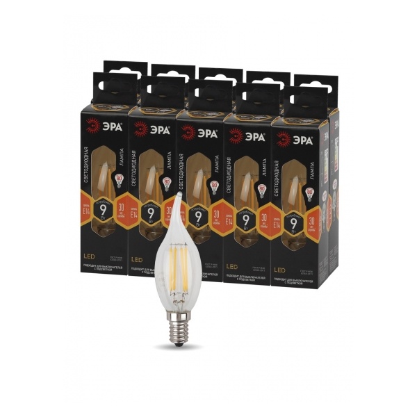 Лампа светодиодная филаментная F-LED BXS-9W-827-E14 BXS 9Вт свеча на ветру E14 тепл. бел. ЭРА Б0047003