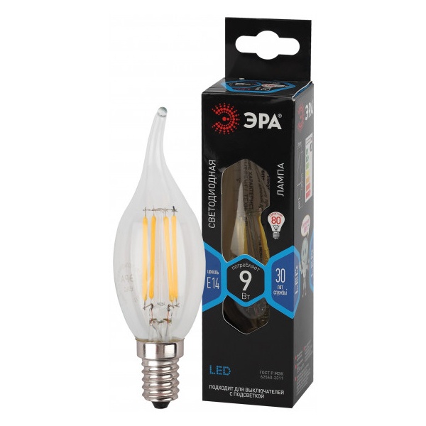 Лампа светодиодная филаментная F-LED BXS-9W-840-E14 BXS 9Вт свеча на ветру 4000К нейтр. бел. E14 Эра Б0047005