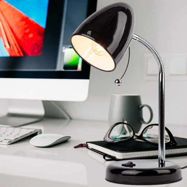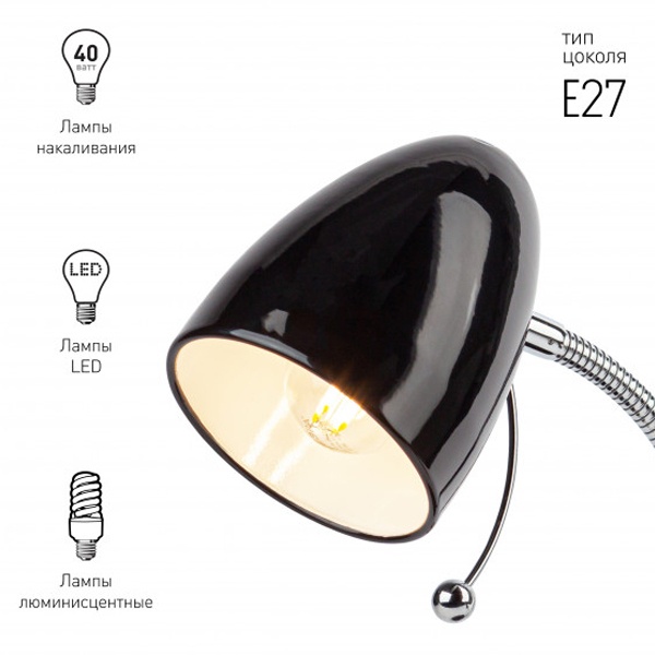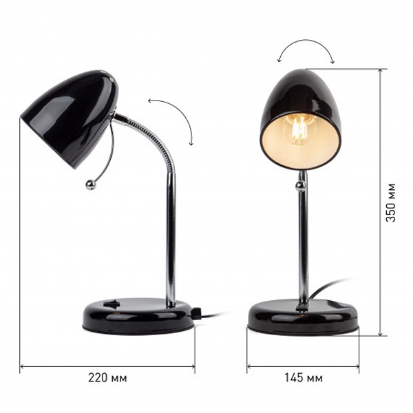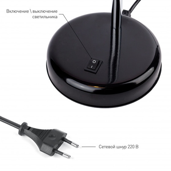 Настольный светильник ЭРА N-116 с цоколем Е27 компактного размера для удобного размещения на столе. Может использоваться с лампой накаливания, компактной люминесцентной лампой (КЛЛ) или светодиодной (LED) лампой. У светильника металлические стойка и плафон, выключатель на основании. Высота расположения плафона регулируется сгибающейся стойкой, направление света - наклоном и поворотом плафона в любом направлении.