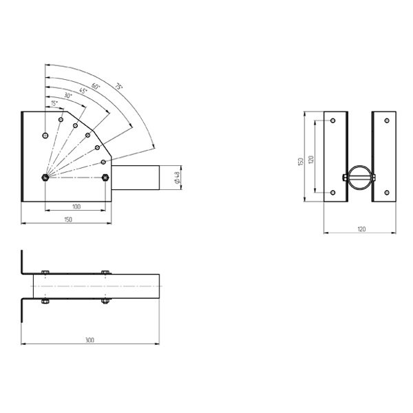 • Кронштейн ЭРА ДС1 SPP-AC2-0-300-048 для уличного светильника с переменным углом 300х150х120 d48mm