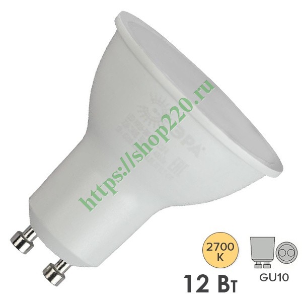 Светодиодная лампочка акцентного освещения ERA, мощностью 12 Ватт, с цоколем GU10, теплый свет Б0047733
