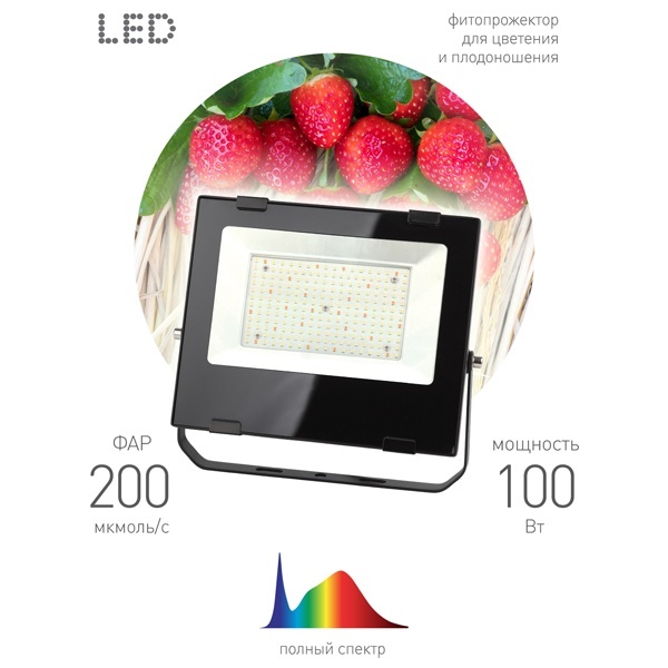 Прожектор светодиодный для растений FITO-100W-Ra90-LED 100Вт для цветения и плодоношения ЭРА Б0047876