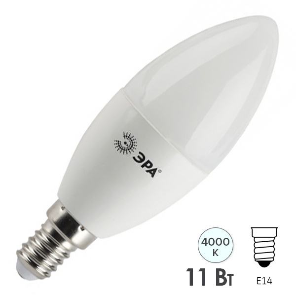 Энергосберегающая LED лампочка свеча, мощностью 11 Ватт, с цоколем E14 (миньон), нейтральный белый свет Б0047940
