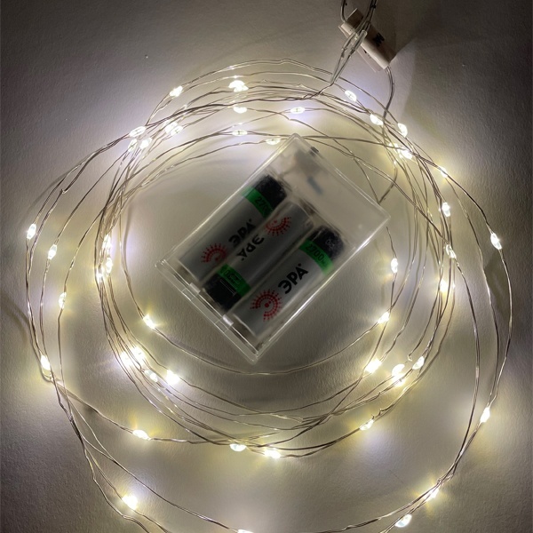 • Гирлянда ЭРА ENIN -5NW LED Нить 5м теплый свет, АА 5056396208105