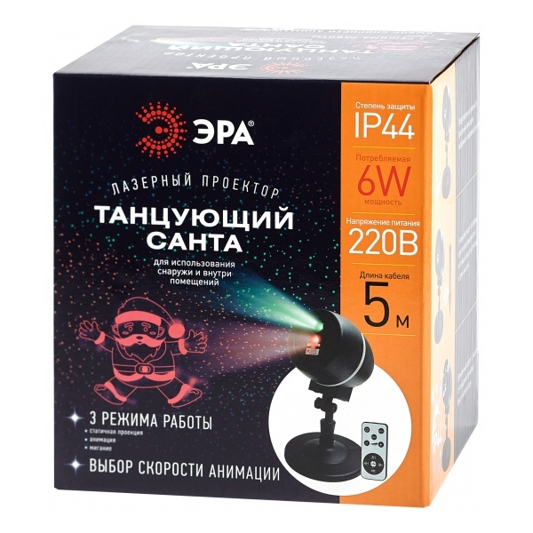 Лазерный проектор ЭРА для анимации Laser Танцующий Санта, 3 режима работы Б0047977
