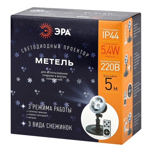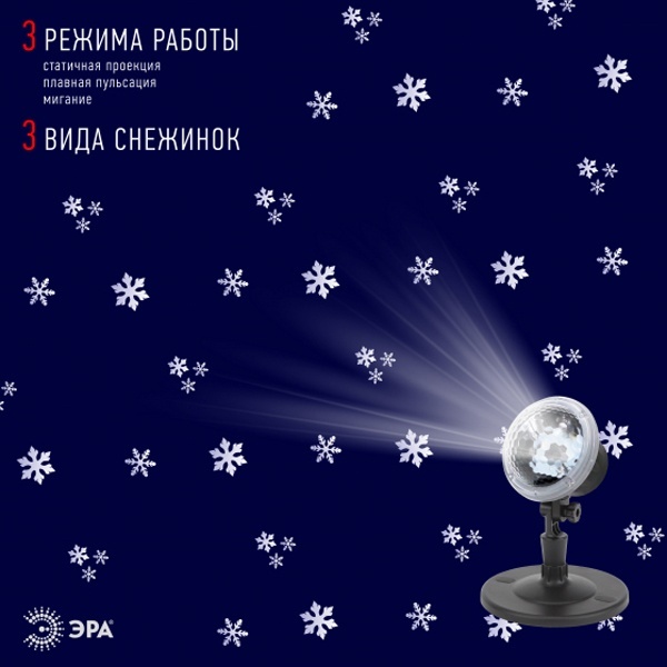 Светодиодный проектор ЭРА для анимации LED Метель, 3 режима работы, 3 вида снежинок