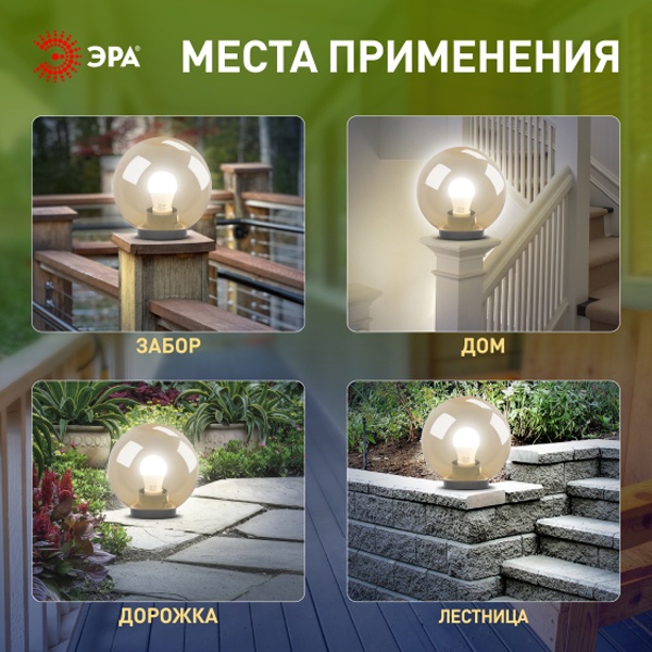 Светильник садово-парковый Шар D400мм E27 зол. НТУ 01-150-403 ЭРА Б0048060