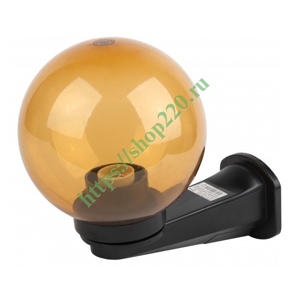 Настенный уличный светильник с рассеивателем в форме золотистого шара диаметром 250 мм, с цоколем Е27 мощностью 60 Вт, ЭРА НБУ Б0048081