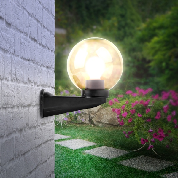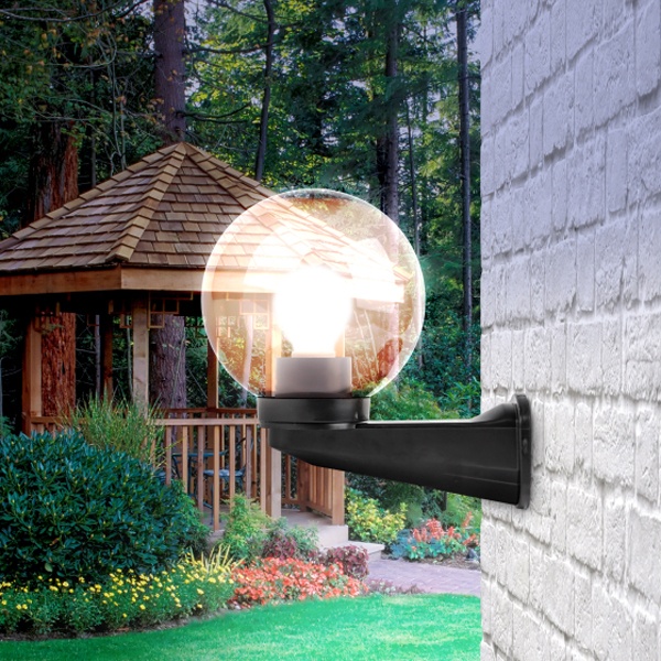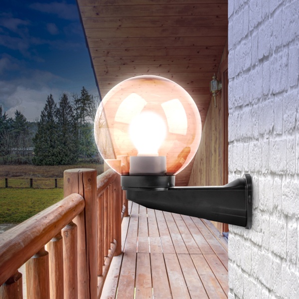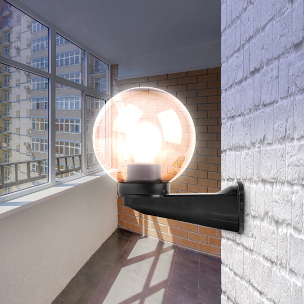 Светильник устанавливается на стену на выносном черном кронштейне. Не подвержен коррозии, деформации под воздействием погодных условий (основание выполнено из поликарбоната, рассеиватель-полиметилметакрилата). Цоколь Е27 для ламп ЛОН, КЛЛ, LED. Расчитан на мощность эквивалентную 60 Ватт лампы накаливания.