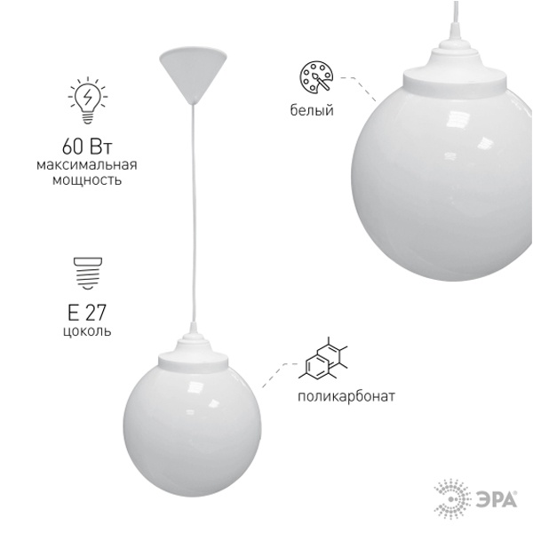 Не подвержен коррозии, деформации под воздействием погодных условий (основание выполнено из поликарбоната, рассеиватель-полиметилметакрилата). Цоколь Е27 для ламп ЛОН, КЛЛ, LED. Расчитан на мощность эквивалентную 60 Ватт лампы накаливания.