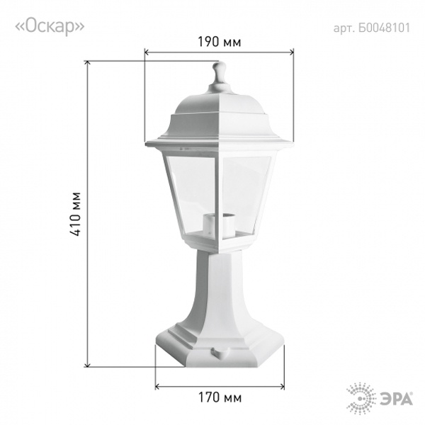 Светильник садово-парковый Оскар E27 напольный четырехгранный бел. НТУ 04-60-001 бел. ЭРА Б0048101